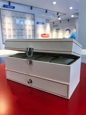 Fibra de carbono moderna e costura estética: A série de armazenamento branco apresenta nossas elegantes texturas de fibra de carbono. Combinados com a nossa capacidade de fornecer couro compatível com costura vermelha de alto contraste, esses materiais atendem à estética moderna, esportiva e luxuosa exigida pelos setores de embalagens de relógios e joias.